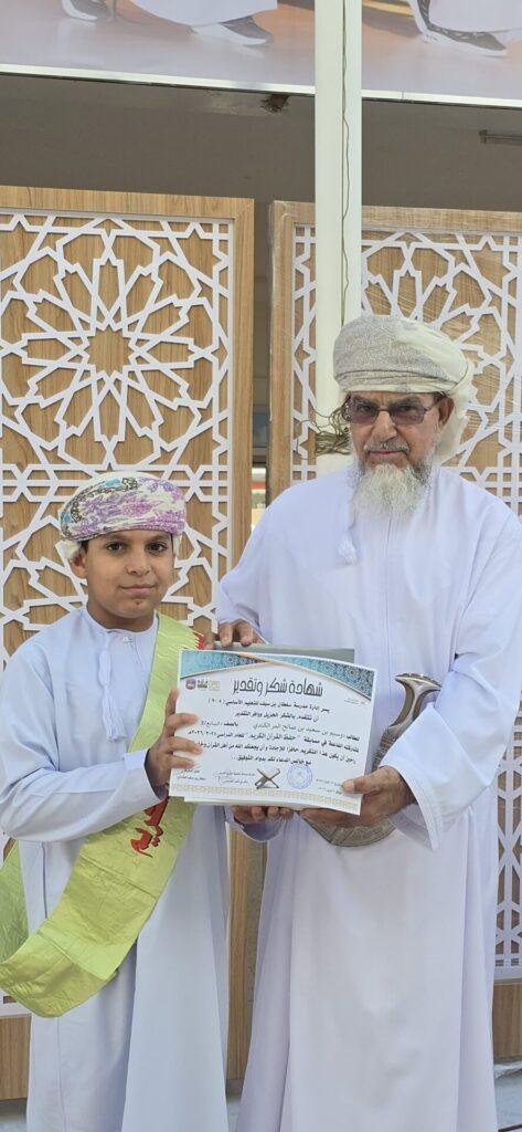 وفي كلمة له، أكد مدير المدرسة الأستاذ سلطان بن سيف العثماني أن هذا التكريم يمثل استثمارًا حقيقيًا في بناء جيلٍ متمسك بكتاب الله، قائلاً: “نهدف إلى ترسيخ القرآن الكريم منهجًا وسلوكًا في حياة أبنائنا الطلبة”، مشيرًا إلى أن ما تحقق هو ثمرة تعاون مثمر بين المدرسة والأسرة.