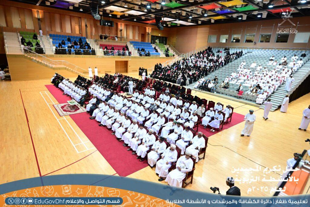 نظمت المديرية العامة للتعليم بمحافظة ظفار يوم الاثنين حفل تكريم المجيدين في الأنشطة التربوية لعام 2025م، وذلك بمجمع السلطان قابوس الشبابي للثقافة والترفيه بصلالة، تحت رعاية سعادة الدكتورة انتصار بنت عبدالله أمبوسعيدي، وكيلة وزارة التعليم للبرامج التعليمية المساندة.