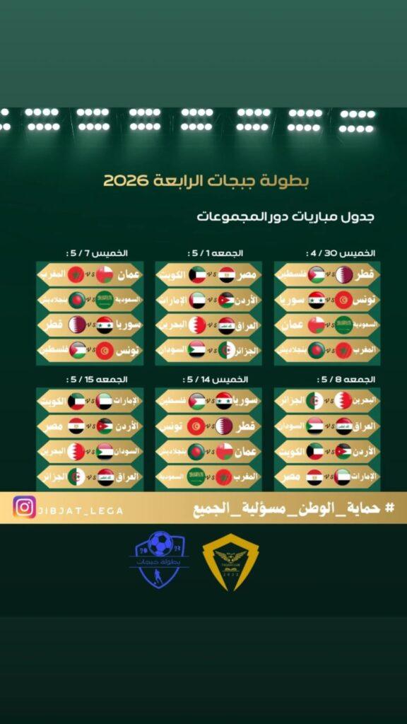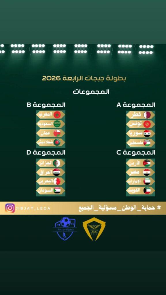 تشهد البطولة مشاركة 160 لاعباً، جرى توزيعهم عبر القرعة الفردية على 16 فريقاً تحمل أسماء دول عربية وصديقة، بما يضفي أجواءً من الحماس ويعزز مبدأ العدالة التنافسية. وأسفرت مراسم القرعة، و التي أقيمت بملعب جبجات الرياضي يوم الجمعة 17 أبريل، عن تقسيم الفرق إلى أربع مجموعات على النحو الآتي: