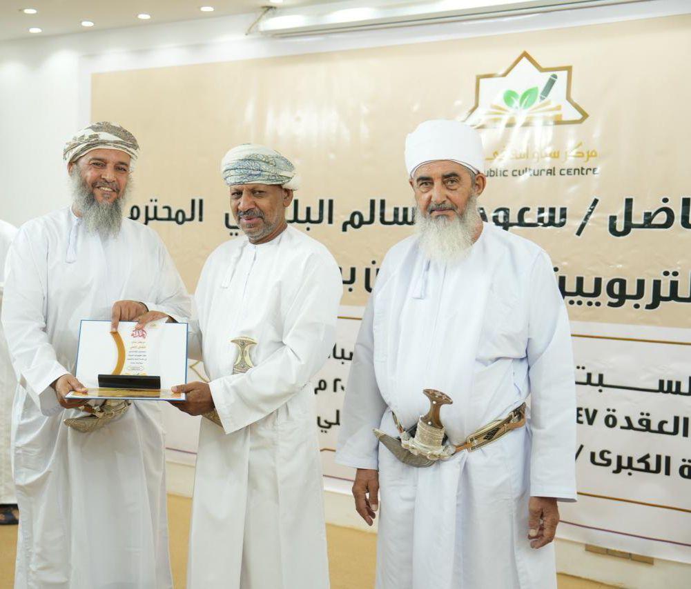 رعى الاستاذ الفاضل / سعود بن سالم البلوشي وكيل وزارة التربية والتعليم سابقا بحضور المكرم محمد بن سليمان الراشدي عضو مجلس الدولة حيث بلغ عدد المحتفى بهم ١٢٩ من المعلمين والمعلمات والمشرفين والكوادر الادارية التي عملت خلال السنوات الماضية من الذكور والاناث .
