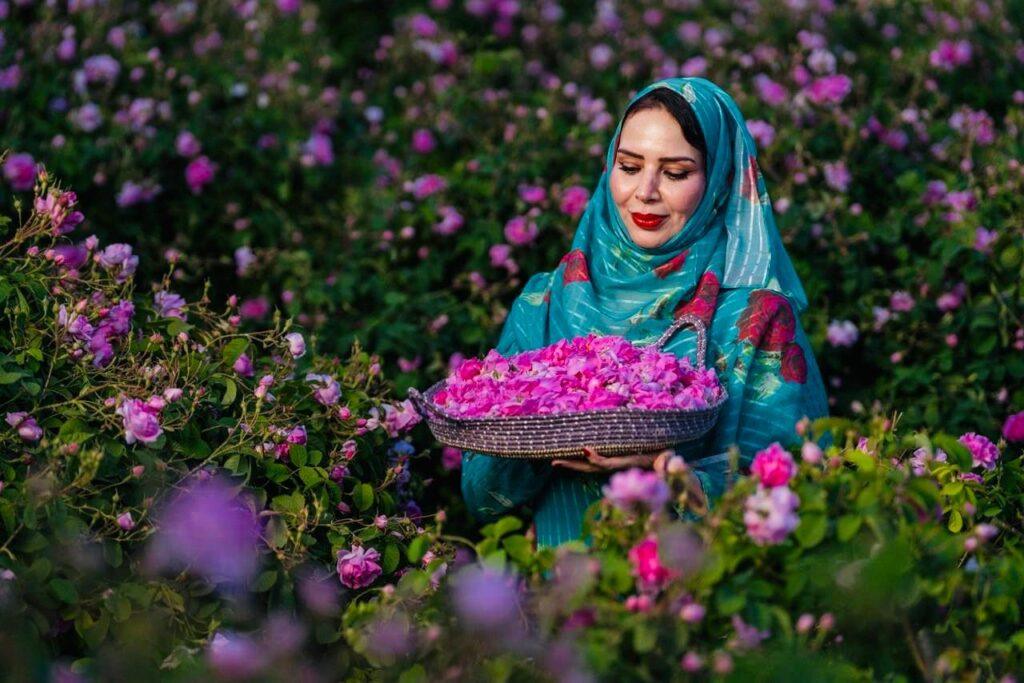 عند الوصول، يستقبلك عبق الورد الدمشقي الذي يملأ الأرجاء، في لوحة طبيعية آسرة تمتزج فيها الألوان بين الأخضر والوردي. المزارعون، بملابسهم التقليدية، ينهمكون في قطف الورد مع ساعات الصباح الأولى، في طقس يومي يعكس أصالة المكان وعمق ارتباطهم بالموسم.
