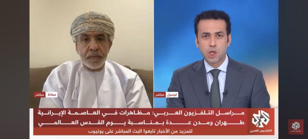 عبر لقاء مباشر مع قناة التلفزيون العربي الفضائية – من صلالة