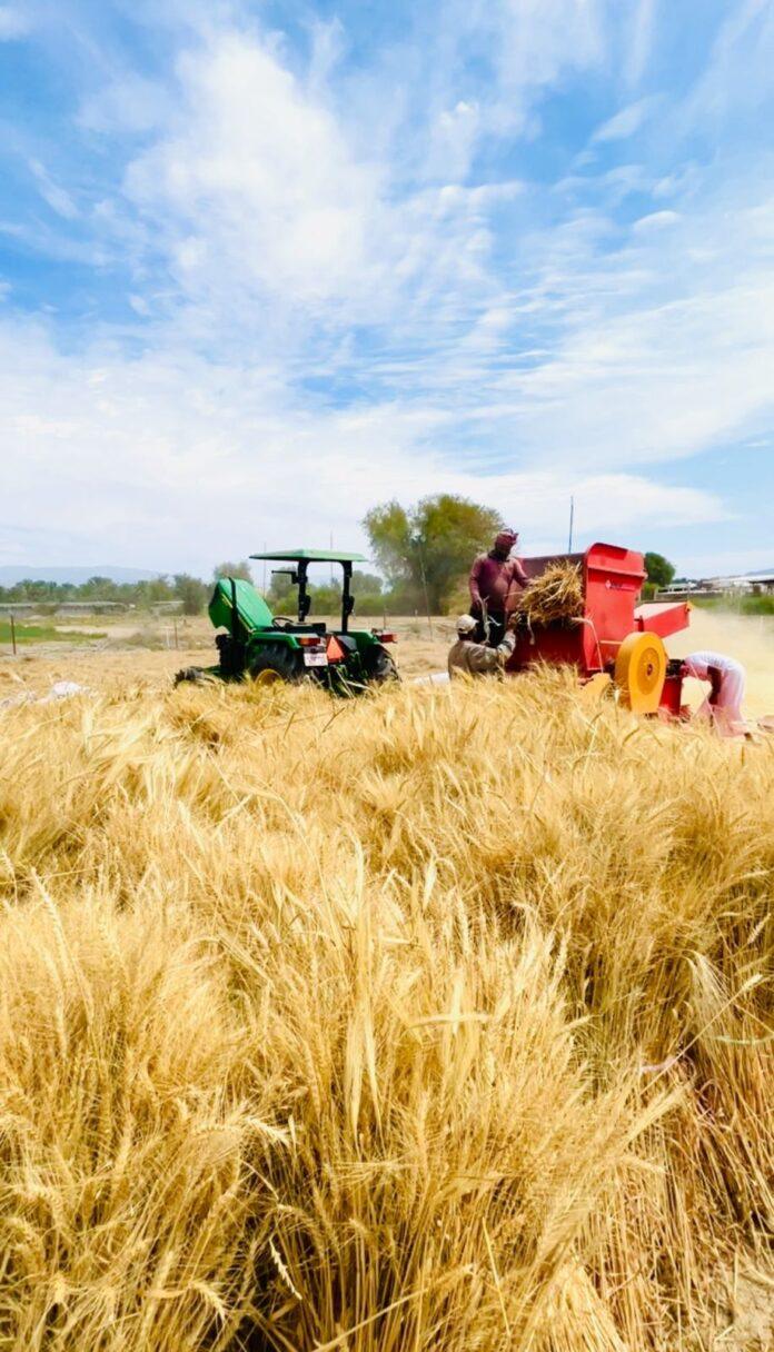 وأوضح المهندس أشرف بن زاهر الشقصي مدير دائرة الثروة الزراعية وموارد المياه بولاية بهلاء أن إجمالي المساحات المزروعة بمحصول القمح هذا الموسم بلغت نحو 66.6 فدانا، حيث تمت زراعتها بمشاركة عدد من المزارعين وبمتابعة وإشراف من المختصين بالدائرة، الذين عملوا على تقديم الإرشادات الفنية اللازمة لضمان نجاح المحصول وتحقيق إنتاجية جيدة.