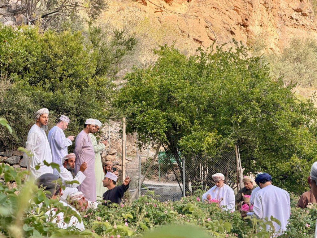 واطّلع الوفد الإعلامي خلال الزيارة على مراحل زراعة الورد والعناية به وقطافه، كما تعرّف على آليات استخلاص ماء الورد باستخدام الأساليب التقليدية والحديثة. وشملت الجولة زيارة مصنع تقليدي للتقطير في قرية الشريجة بولاية الجبل الأخضر، حيث استمع المشاركون إلى شرح مفصل حول عملية التقطير باستخدام «الدهجان»، وهي أفران تقليدية تُستخدم لاستخلاص ماء الورد من الأزهار، وتستغرق العملية ما بين ثلاث إلى أربع ساعات، يعقبها تخزين المنتج لفترة تتراوح بين 30 و40 يومًا لضمان نقاوته وجودته.