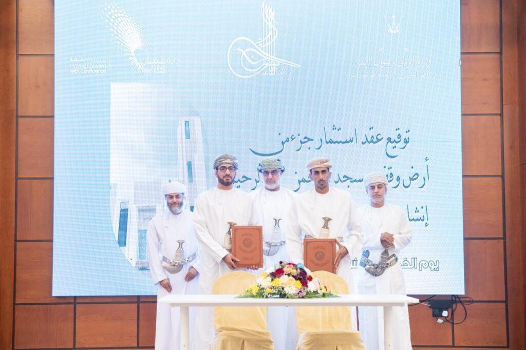 وعلى هامش اللقاء، رعى سعادة المحافظ مراسم توقيع اتفاقيات استراتيجية لتعزيز أعمال التجديد والاستثمار، حيث تم توقيع عقد استثمار جزء من أرض وقف مسجد الرحمن الرحيم بولاية إبراء مع الفاضل صالح بن سالم بن حمود المالكي لإنشاء محطة وقود بمرافقها ومحلات تجارية؛ وقعها نيابة عن وزارة الأوقاف والشؤون الدينية الدكتور أحمد بن علي الكعبي، مدير عام الأوقاف والأموال وإعمار المساجد ومدارس القرآن الكريم.