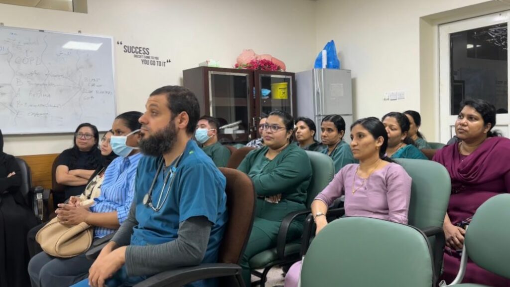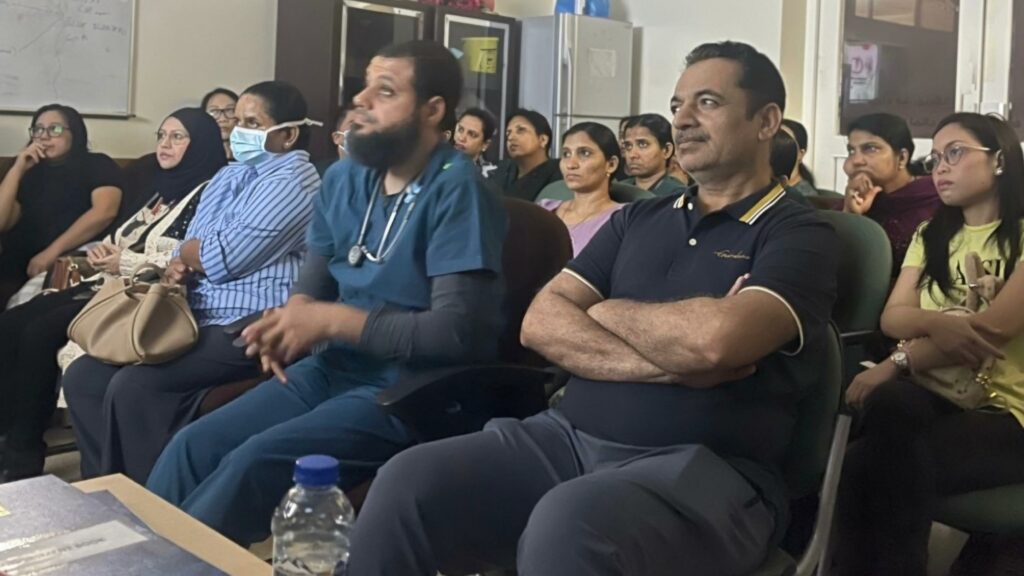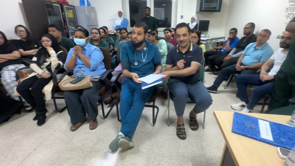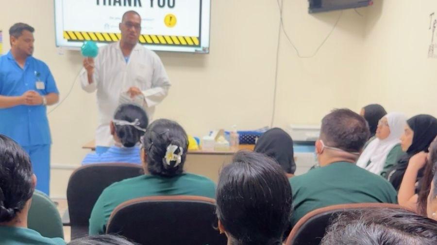 قدّم المحاضرة مشرف التمريض أحمد شماس، نقطة الارتكاز بمستشفى السلطان قابوس بصلالة، بمشاركة الممرض المختصص هشام البلوشي من قسم مكافحة العدوى، حيث أُقيمت الفعالية بقاعة الاجتماعات بقسم الطوارئ، بحضور عدد من الكوادر الصحية ذات العلاقة.